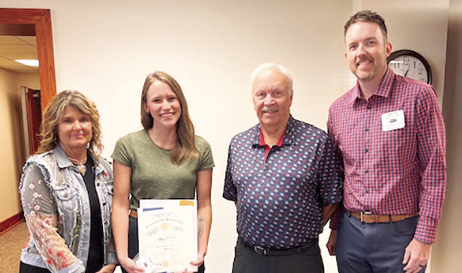 Next, Seth called Kim McKee, Steve Knowles, and Abbey Thorman to the front to start the official induction of Abbey as the newest member of the Rotary Club of Macomb. Steve and Kim were Abbey’s sponsors and Steve read her bio to the members. President Seth then conducted the induction of membership to Abbey and duly inducted her into Rotary. All members welcomed Abbey to our club.