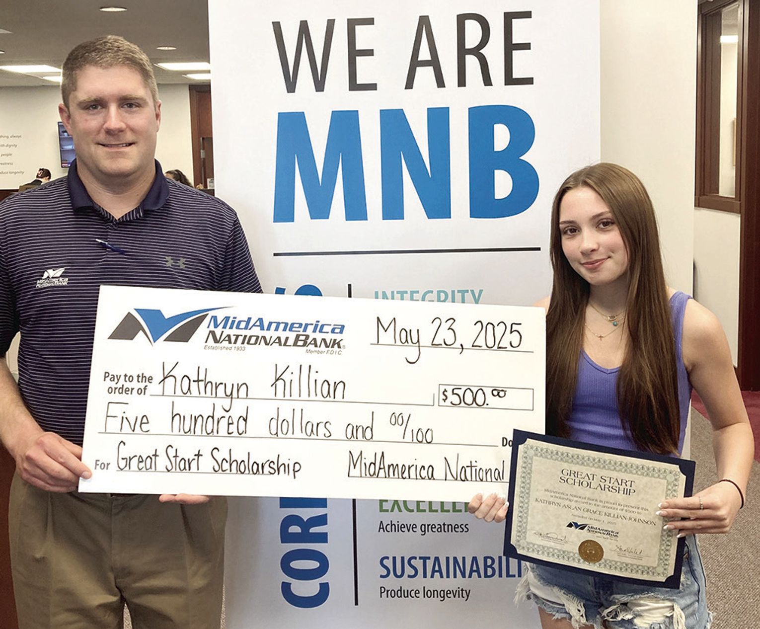 (Macomb) Kathryn Killian-Johnson has been awarded one of MidAmerica National Bank’s Great Start Scholarships for the 20252026 school year. These scholarships were created to help local students get a “great start” on their education.