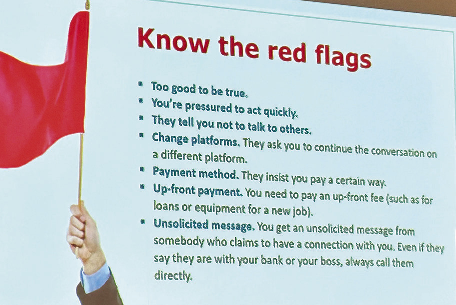 Tharp shared numerous examples of scams that are circulating, and reiterated numerous times, if it sounds too good to be true, it probably is a scam. And anything that requires you to send a 'fee' in order to get a prize, a product or a job isn't legit.