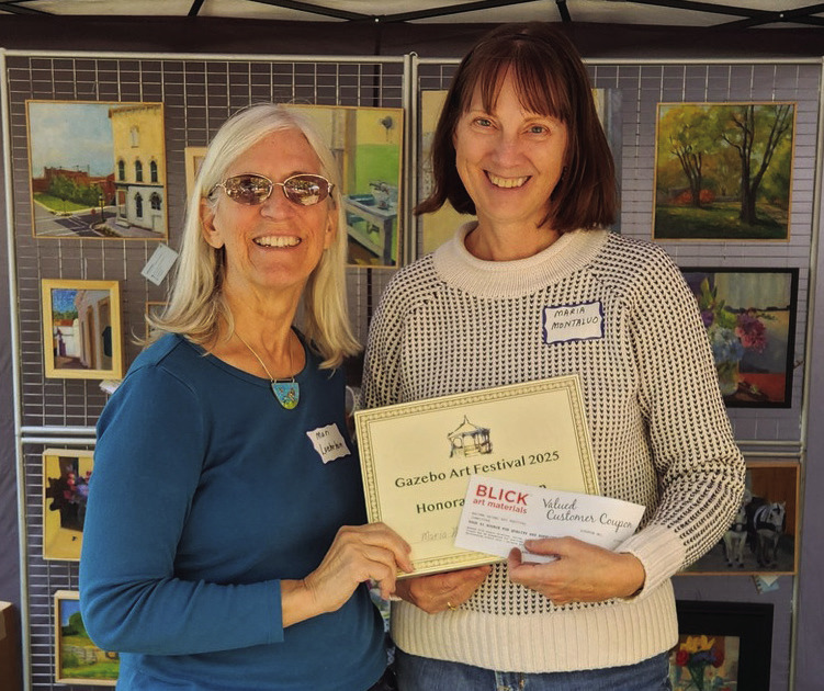 The artist chosen to receive the City of Macomb Purchase Award was Whitney Fowler, pictured with Savannah Ballard, Macomb Downtown Development Director.