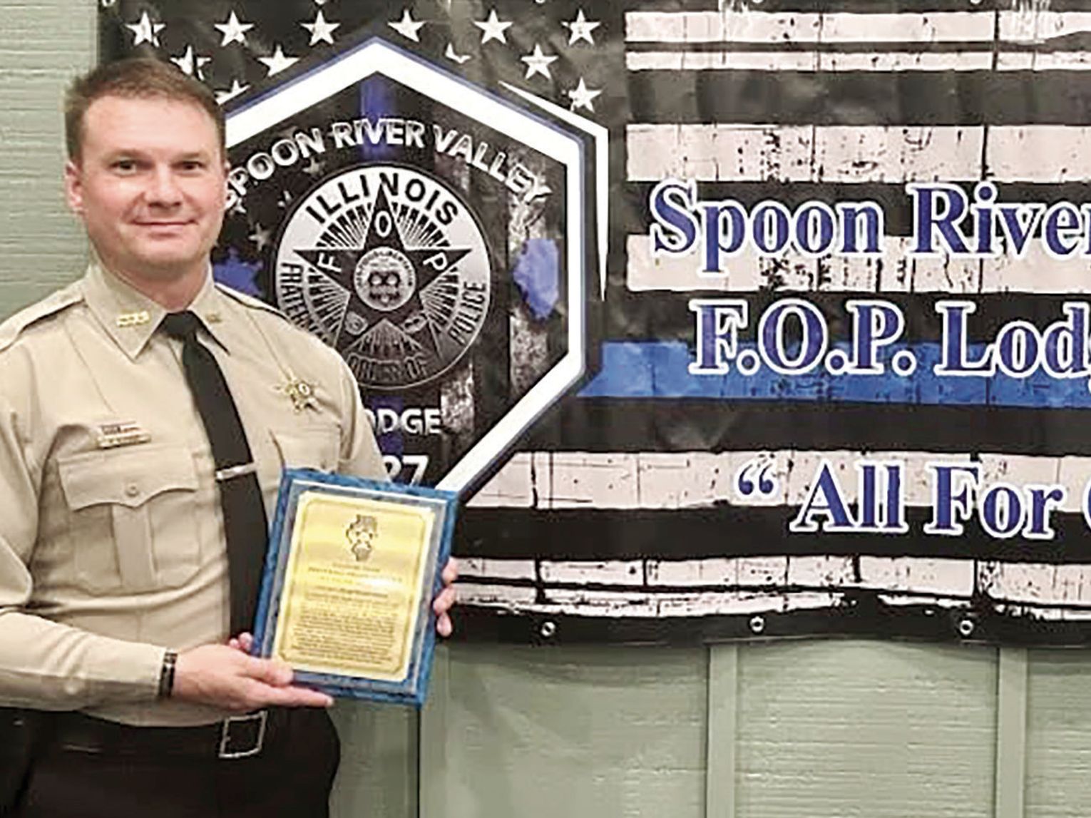 On Saturday, Sept. 13, 2025, Sheriff Nick Petitgout and Deputy Cody Lovell received the Illinois Fraternal Order of Police Lifesaving Award. The Spoon River Valley Fraternal Order of Police Lodge 427 presented the honor during their fall meeting. Both officers are members of Lodge 427.