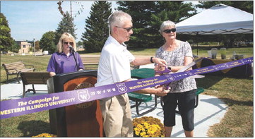 A new space for rest and reflection is now available on the Western Illinois University campus, following a ribbon cutting ceremony on Saturday, Sept. 13. The newly- completed Drs. Bea and Jim Wehrly Memorial Plaza is located between Stipes Hall and Hanson Field.