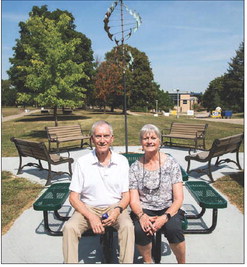 The Wehrly Memorial Plaza features four benches, a picnic table and a spinning sculpture, nicknamed the “Wehrly-Gig” by Dot. In the coming weeks, two maple trees will be planted and a memorial plaque will be installed to complete the space.