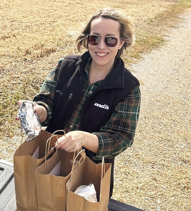 For the second year, the Foundation, along with MDH CEO Bill Murdock, MDH Foundation staff and Board members, provided Harvest Meals to the Field for 210 area farmers. The team delivered the meals – pork chops, cheesy potatoes and cobbler, all prepared by The Annex in LaHarpe – directly to the farmers in the field Monday and Tuesday. MDH volunteers put together the field packs for delivery.