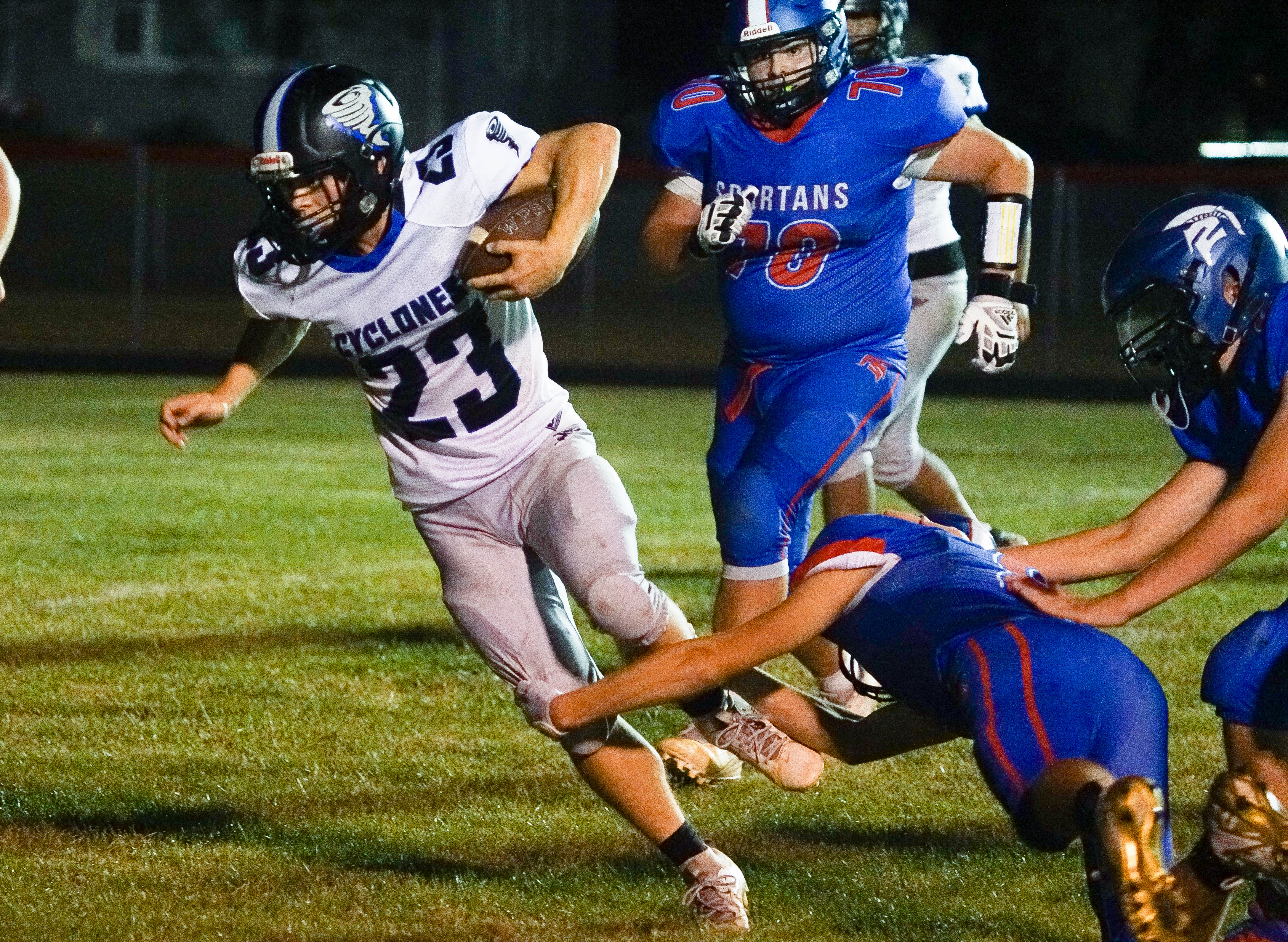 B-PC turned the ball over on a fumble a short time later and the Cyclones needed only three plays to increase their lead as Tanner scooted 30 yards for a touchdown with 9:10 to go in the first quarter.