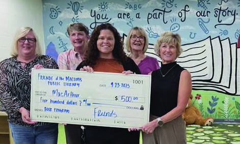Friends of the Macomb Public Library make a $500.00 check donation towards MacArthur Early Childhood Center's LOVE of Reading Program. Each student receives 1 free book a month during the school year. FOMPL is proud to support this important program for our young people.