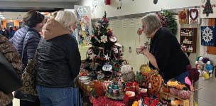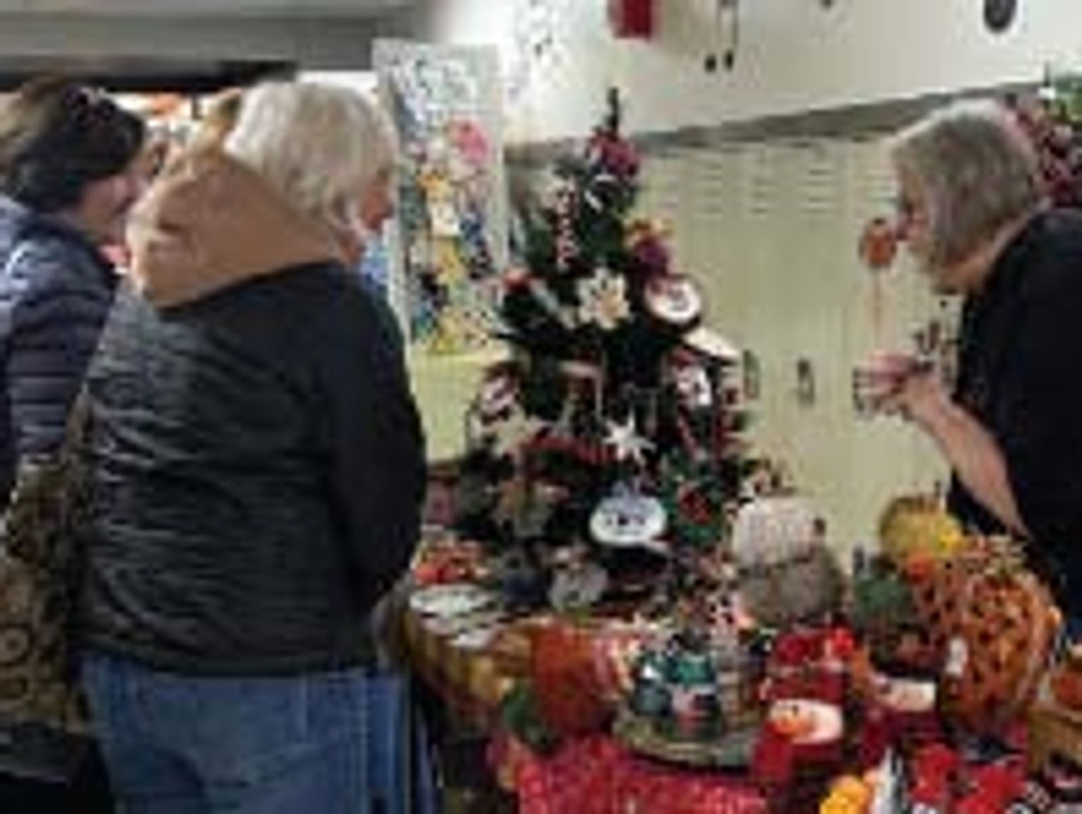 Talented crafters lined the hallways of Macomb High at the annual Altrusa Bazaar. Kay Self is pictured chatting with friends and customers.