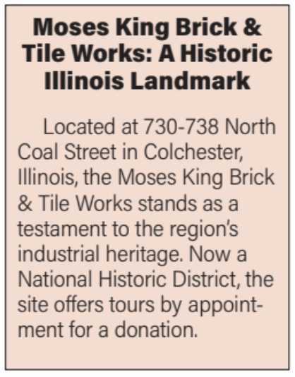Tours and Donations - Support preservation and are tax-deductible. The Moses King Historic District was dissolved around 2018. The current owners of the property are working with the State of Illinois to reinstate the non-profit status. If you are interested in making a donation, please visit The Brickyard Facebook page at https://www.facebook.com/KingBrickyard.