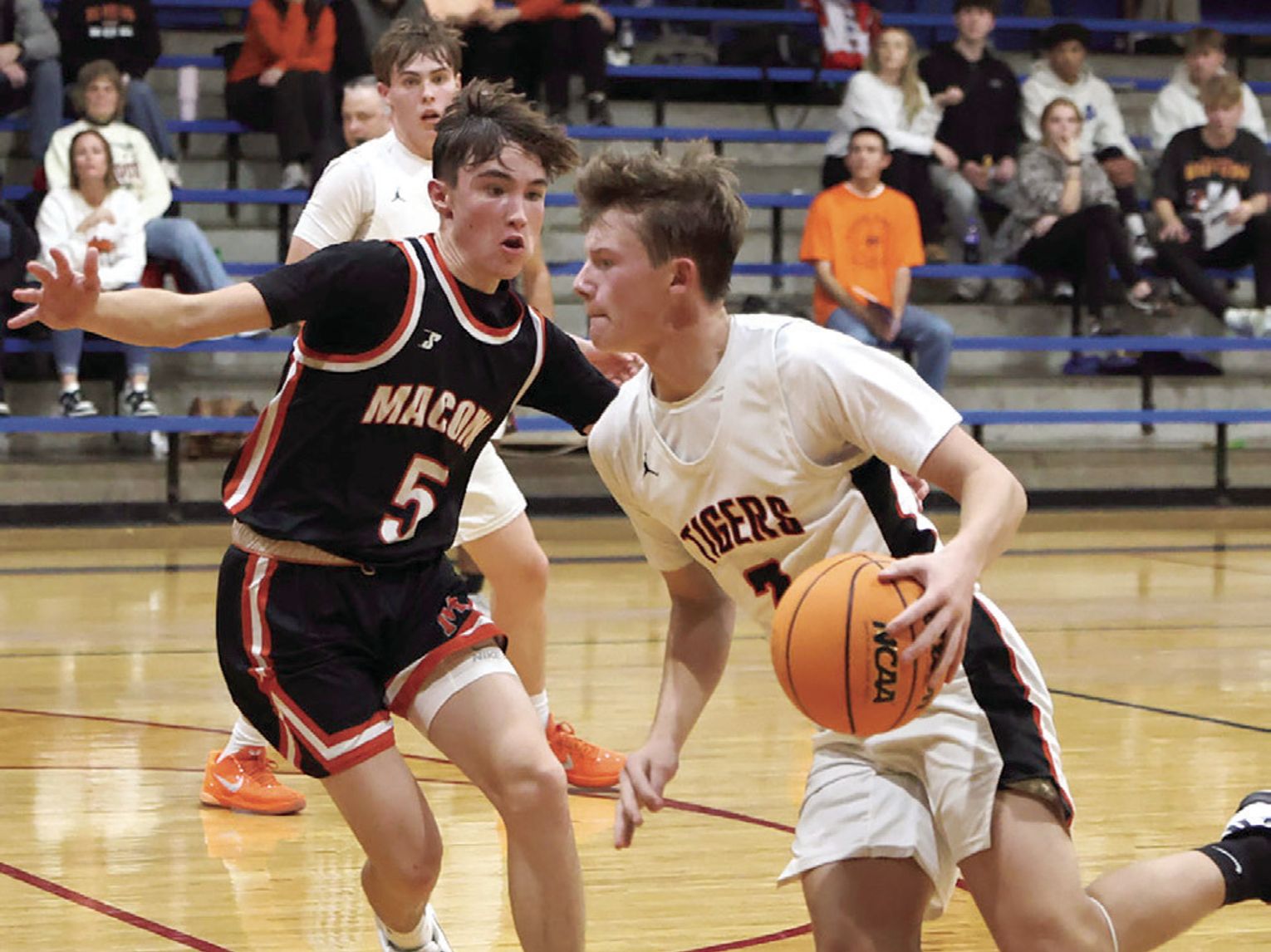 MHS and IB started out as a see-saw affair in the first half with the Tigers taking their largest lead of the game at 6-2 on a Drew Dunn three-pointer.