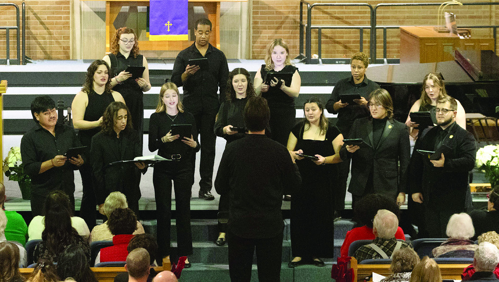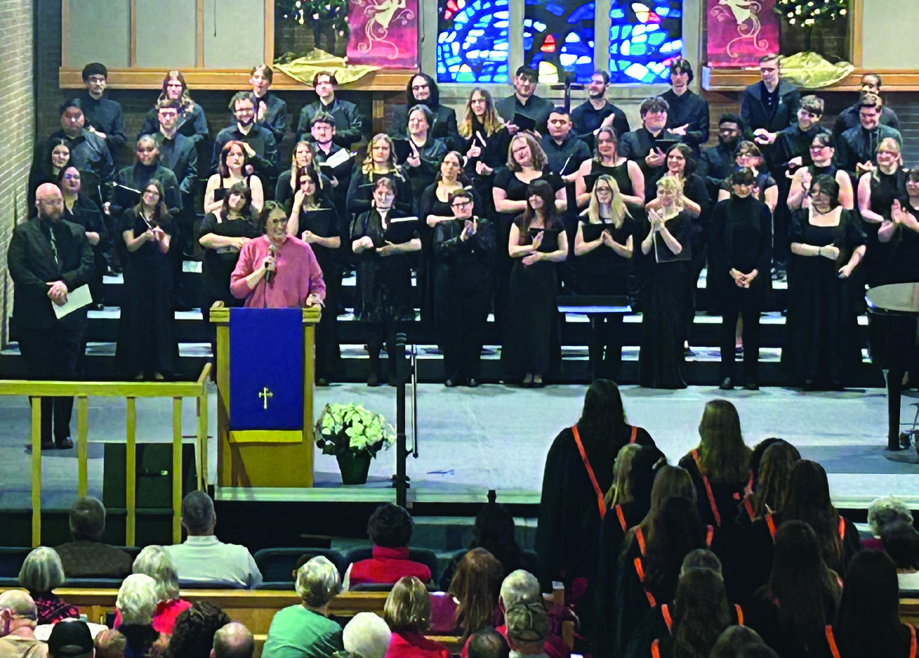 Macomb Middle School Music Teacher Ethan Ivey (left photo) was recognized by parents at the Holiday Festival of Choirs held at Wesley Church.