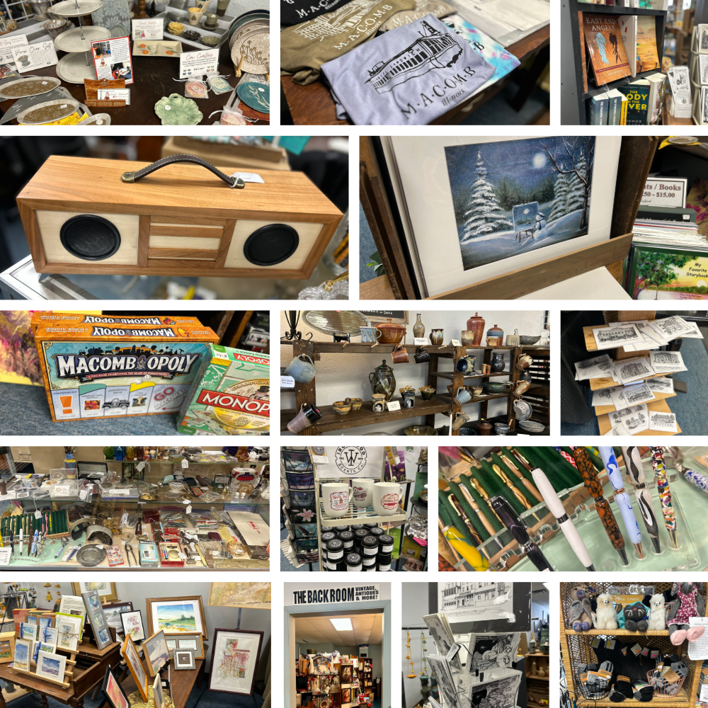 From beautifully-designed cards created by local artists that pay homage to Macomb (and other Illinois) sites – the old Change of Pace anyone?! or the old round barn north of Macomb -- or that feature water color sketches or hand-inked birds to gorgeous (and practical) ceramic items made by local artists (spoon rests, garlic scrapers, you-name-it) to gorgeous painting and sketches to exquisitely carved woodwork (a Bluetooth boombox replica?! YES, please) to hometown tees that feature your favorite watering holes and other area landmarks from yesteryear (and today) to oh-so-comfy-cozy Alpaca socks … we've got the gift that will suit nearly anyone in your family.