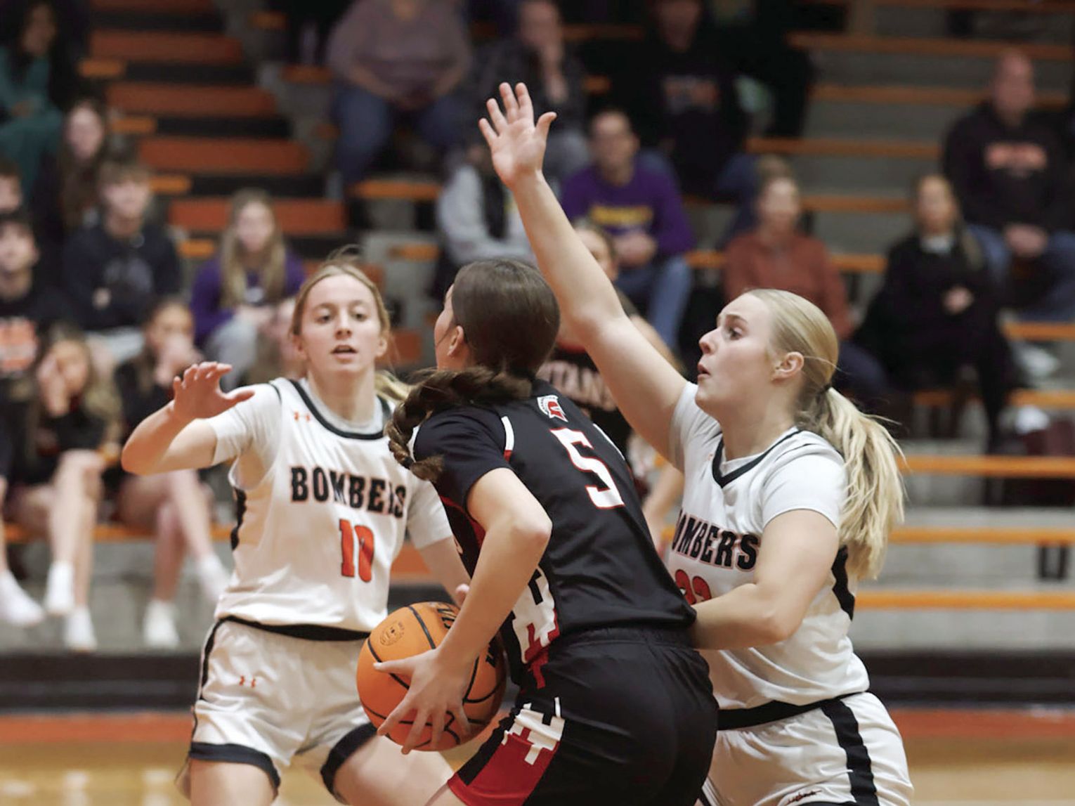 Aubrey Holthaus added seven points, followed by Jordan Hines with four points. Dakota Thorman and Destiny Monroe added two points apiece for the Bombers.