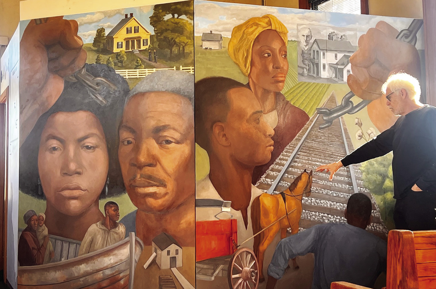 The new mural “Freedom Trail: Underground Railroad in McDonough County,” designed and painted by local artist Michael Mahoney, was unveiled in the Thomas C. Carper Amtrak Station. The painting showcases McDonough County’s place in the history of the Underground Railroad.