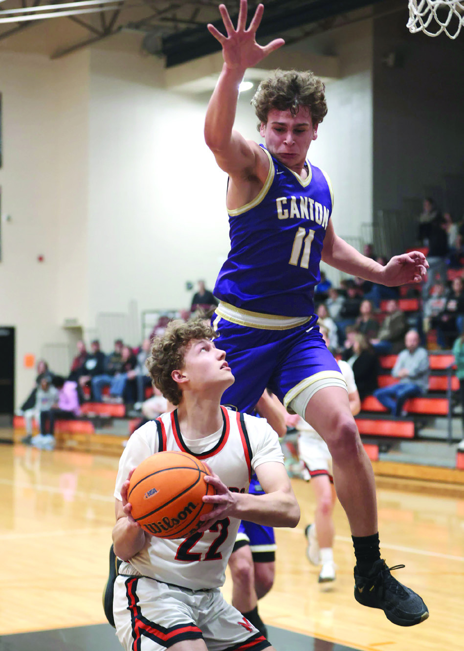 Defense was the name of the game down the stretch as MHS was held to only one field goal over the final six minutes, but Canton could manage only a pair of field goals including a trey by junior Easton Lusk with 20 seconds to go to bring the visitors to within 52-49.