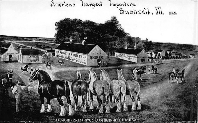 In the 1880s, the most important horse breeding farm in McDonough County was the Truman Pioneer Stud Farm. By the early 1900s, the farm had won national acclaim and the Trumans were known as 'America's Largest Horse Importers.' Bushnell, Illinois had become the 'Horse Capital of the U.S.A.'