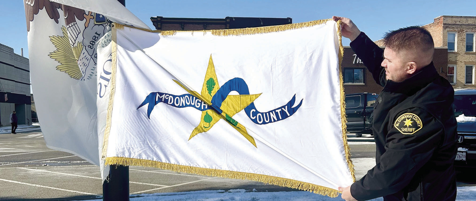 During the Jan. 26 event, remarks were provided by County Board Chair Eric Blakely, Mayor Mike Inman, Sheriff Nick Petitgout and Western Illinois University English Professor Emeritus and Archivist John Hallwas. The Macomb Area Chamber of Commerce concluded with a ceremonial ribbon-cutting, and the raising of the McDonough County flag at the Courthouse flag pole.