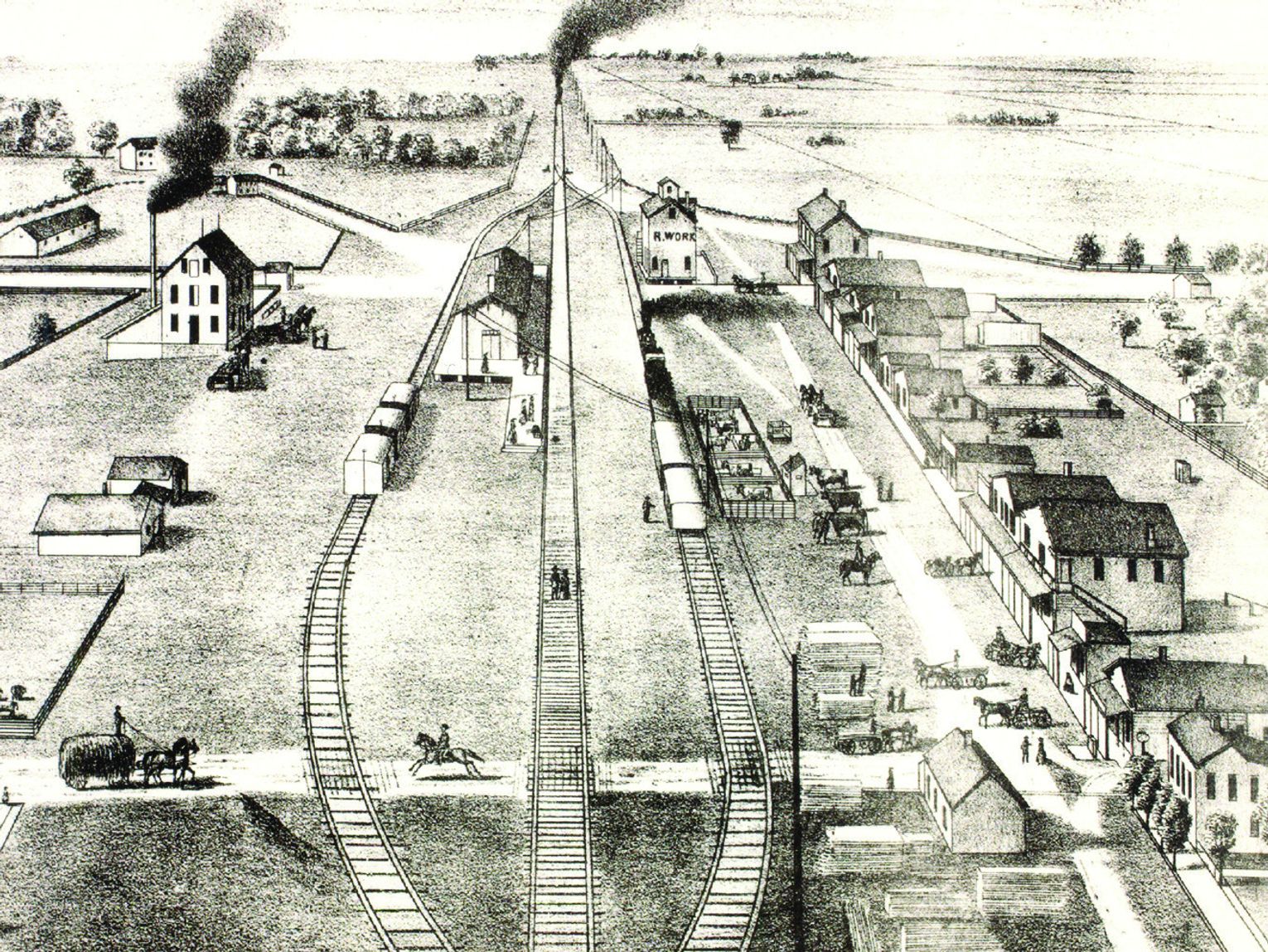 Of course, the coming of the CB & Q (Chicago, Burlington, and Quincy) Railroad, in the later 1850s, had an impact on the shipping of both livestock and other products—from Macomb and smaller towns. In Bushnell, for example, access to cities by railroad shipping prompted a successful early business, the Ayres and Decker Company, which made barbed wire fences.