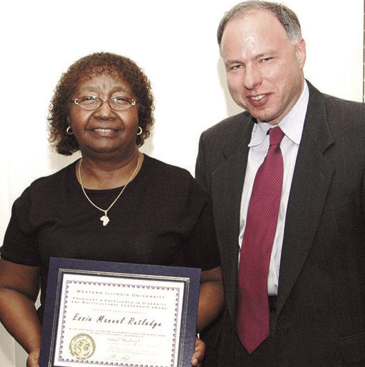 In addition to chairing the African American Studies department, Rutledge also facilitated the creation of WIU's Women's Center and served on its advisory board. She was also a longtime member of UPI, WIU's faculty union, noting that women and people of color were often disadvantaged in salary and promotion negotiations; however, she was committed to the needs of all University personnel, according to the 2019 award nomination.
