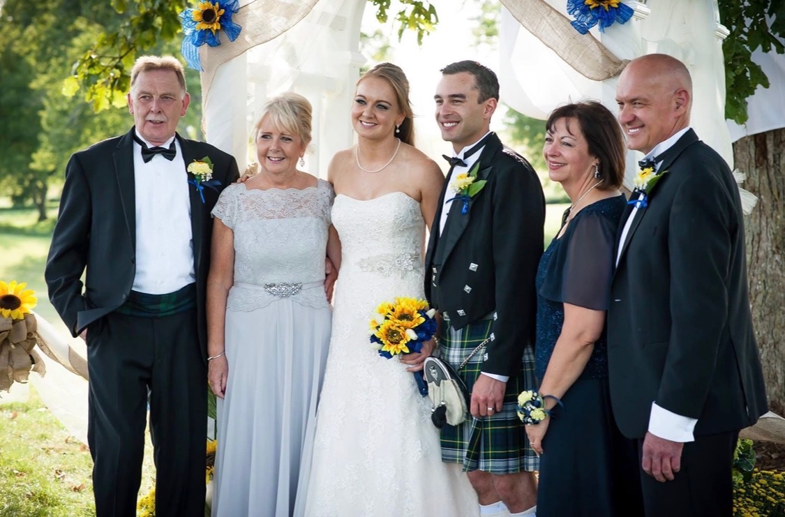 Ryan and Claire had two weddings: a smaller one in Sycamore, IL on October 11, 2015 and then a larger, full blown Scottish wedding at the Jerry Lewis Farm (north of Macomb) on September 3, 2016. The men of the wedding party all wore special-ordered kilts.