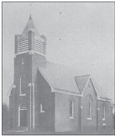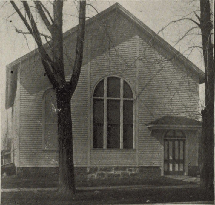 That church had 28 members and met in the Baptist Church until their building was completed on August 29, 1869. The first minister is listed as the Rev. Matthew Bigger in April 1872.