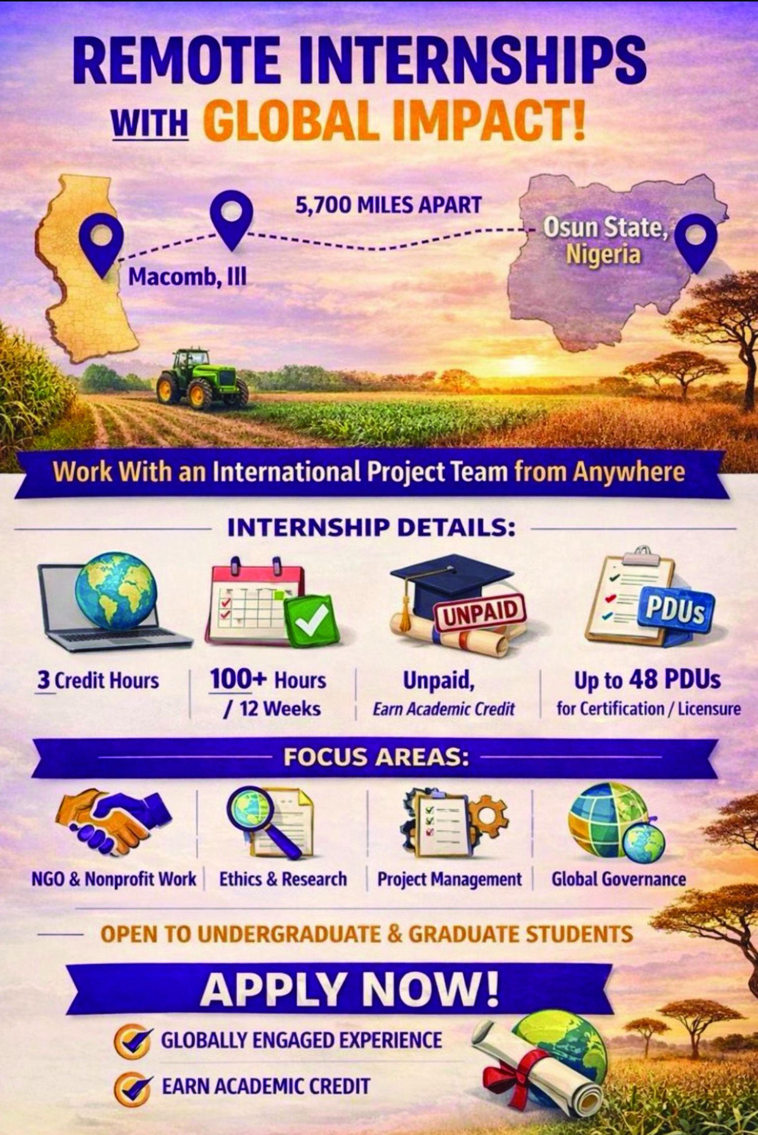 Even though there are 5,700 air miles between Macomb, Illinois and Osun State, Nigeria, faculty and students from Western Illinois University and professionals from the Western Africa sovereign state are forging partnerships to help propel Nigerian women into leadership roles so they can further build their country's independence.