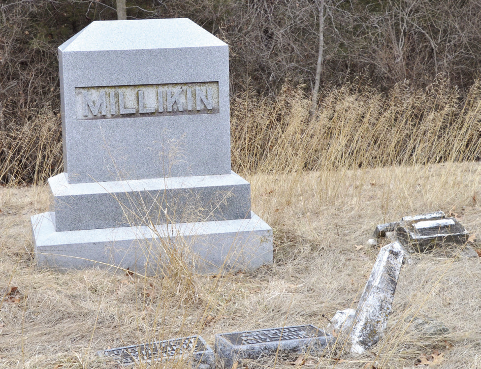 Eight months later Lucy died on December 9, 1882, of respiratory illness while caring for a sick relative — ever living out the wishes of Alvin on his deathbed for Lucy to serve as a family caretaker. She and Arthur are buried in the Widow Moore Cemetery just northwest of Colchester. Standing beside their ornate granite monument is an ancient limestone monument to her daughter Julia Amelia Millikin Harper.