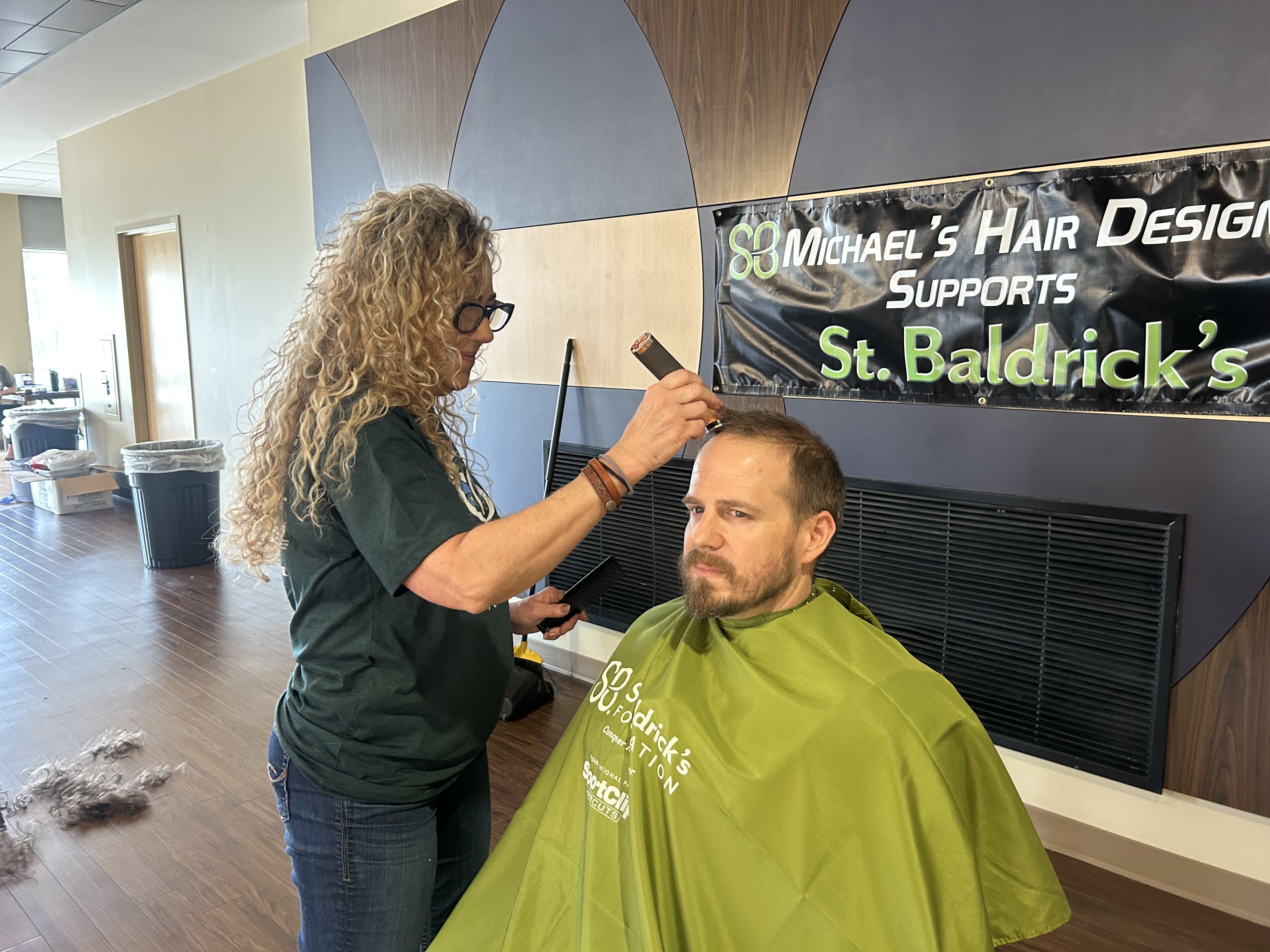 According to Mahoney, the Michael's crew became involved in the St. Baldrick's event because we wanted to do something to give back to the community and children. There was a group of students from WIU that took St. Baldrick's on a project and they asked the local salon to shave heads for the event.