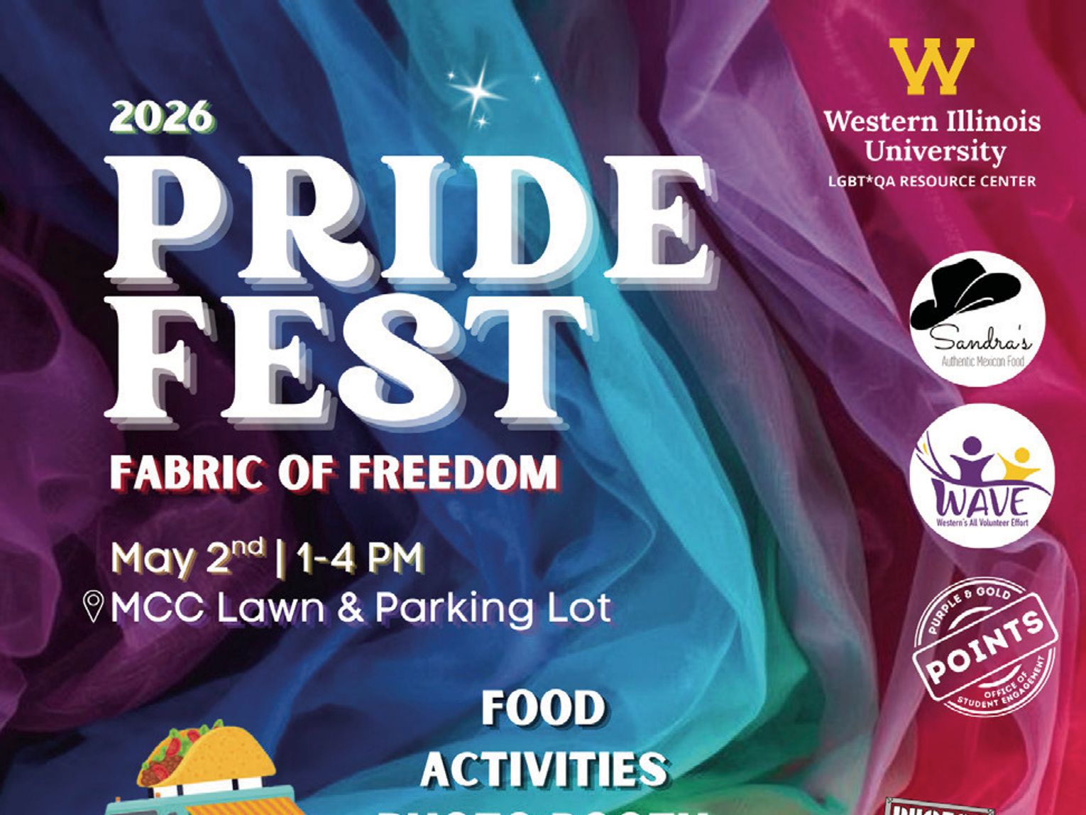 'Our Pride Fest, 'Fabric of Freedom,' offers something for everyone, and is designed to celebrate individuality, unity and the diverse identities that make up the WIU community,' said MCC Director Katy Valentin. 'The event is open to everyone. Please join us in celebrating diversity and togetherness.'