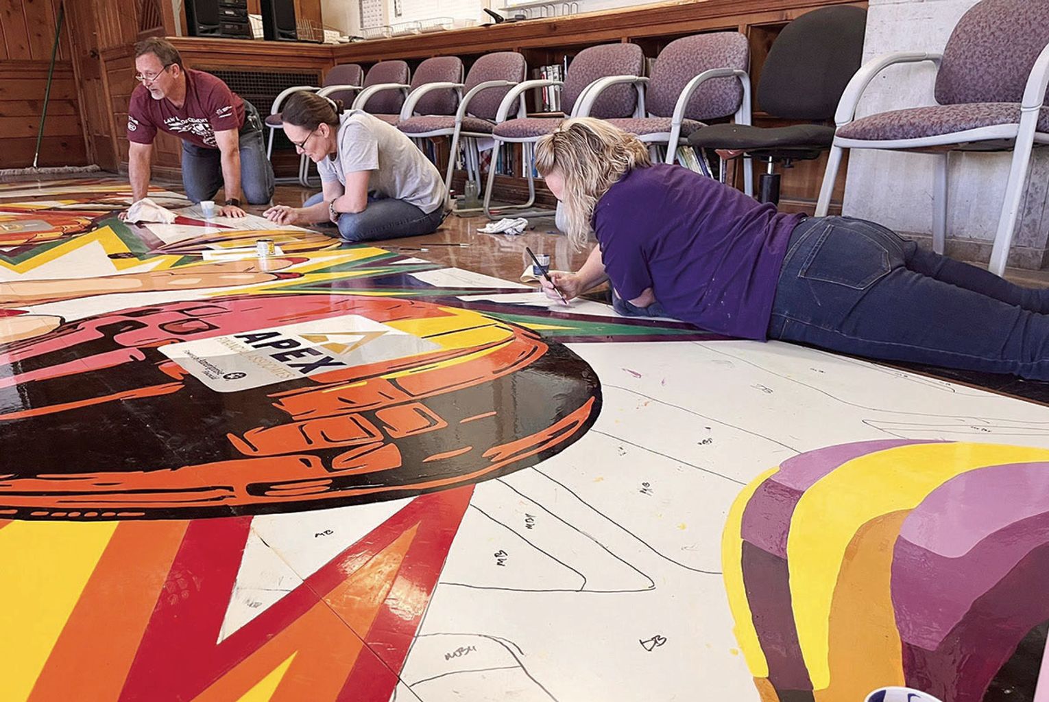 In addition to those who helped paint the sections, people like Troy Rhoads, Scott Coker, Sam Moran and Dan Meyers came out on May 24 to help with the nearly eighthour install on The Ice House building.