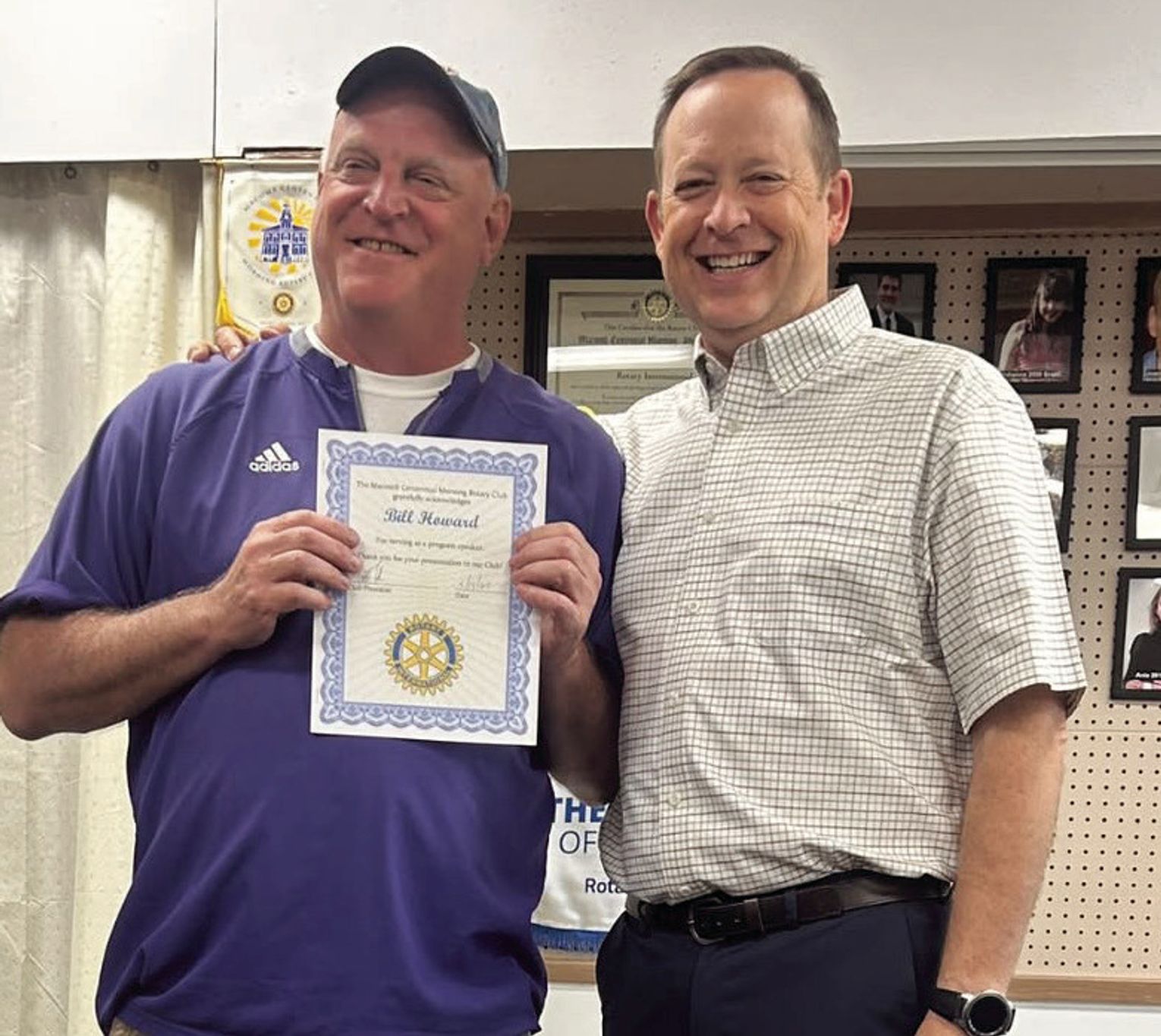 The Centennial Morning Rotary Club recently heard from Bill Howard, local artist and retired WIU professor, who has created a number of large scale murals throughout the city including the pieces at The Old Dairy, Gelsosomo's Pizzeria, Sports Corner, Hanson Field and now the Ice House Mural.