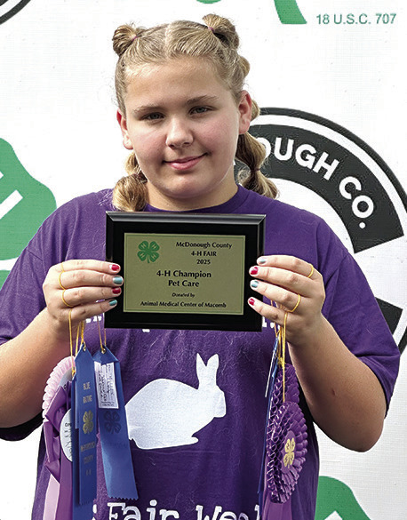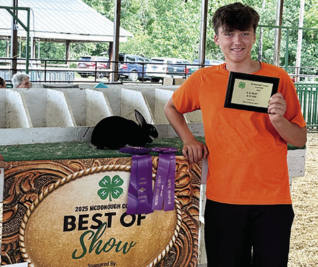 Lance Hotto, Scotland Clever Clovers, Rabbits, Crossbred Junior Buck, Blue; Rabbits, Crossbred Junior Doe, Blue; Rabbits, 6 Class Senior Doe, Blue, 4-H Champion Emma Bible, Blandinsville Blue Ribbons, Rabbits, Crossbred Senior Doe, Blue; Rabbits, Crossbred Junior Doe, Blue, 4-H Grand Champion, 4-H Junior Showmanship; Rabbits, Crossbred Senior Buck, Blue; Rabbits, Pet Care, Blue, 4-H Reserve Grand Champion Liberty Bostic, Blandinsville Blue Ribbons, Rabbits, Pet Care, Blue, 4-H Grand Champion; Rabbits, 4 Class Junior Buck, Blue, 4-H Reserve Champion; Rabbits, 4 Class Senior Doe, Blue; Rabbits, 4 Class Junior Doe, Blue; Rabbits, 4 Class Senior Buck, Blue, 4-H Senior Showmanship Ryleigh Hall, Bushnell Busy B's, Rabbits, 4 Class Senior Buck, Blue; Rabbits, 4 Class Junior Buck, Blue; Rabbits, 4 Class Senior Doe, Blue; Rabbits, 4 Class Junior Doe, Blue; Rabbits, Meat Pen, Blue, 4-H Reserve Grand Champion; Rabbits, Crossbred Senior Buck, Blue, 4-H Reserve Champion Bentley Hemphill, Scotland Clever Clovers, Rabbits, 6 Class Junior Buck, Blue; Rabbits, 4 Class Senior Doe, Blue, 4-H Champion, 4-H Rabbits Best of Show; Rabbits, 4 Class Senior Buck, Blue Natalie LeMaster, Scotland Clever Clovers, Rabbits, 4 Class Senior Buck, Blue; Rabbits, 6 Class Senior Doe, Blue; Rabbits, 6 Class Junior Buck, Blue; Rabbits, Crossbred Senior Buck, Blue; Rabbits, 4 Class Senior Doe, Blue Payton Parsano, Scotland Clever Clovers, Rabbits, 6 Class Senior Buck, Blue; Rabbits, 4 Class Senior Doe, Blue Kendrick Welsh, Blandinsville Blue Ribbons, Rabbits, Meat Pen, Blue, 4-H Grand Champion, Rabbits, 6 Class Senior Buck, Blue; Rabbits, 6 Class Junior Buck, Blue; Rabbits, 6 Class Senior Doe, Blue; Rabbits, Single Fryer, Blue; 4-H Reserve Champion, 4-H Reserve Best of Show Rabbit; Rabbits, 6 Class Junior Doe, Blue, 4-H Champion Read more results in upcoming issues of the Community News Brief.